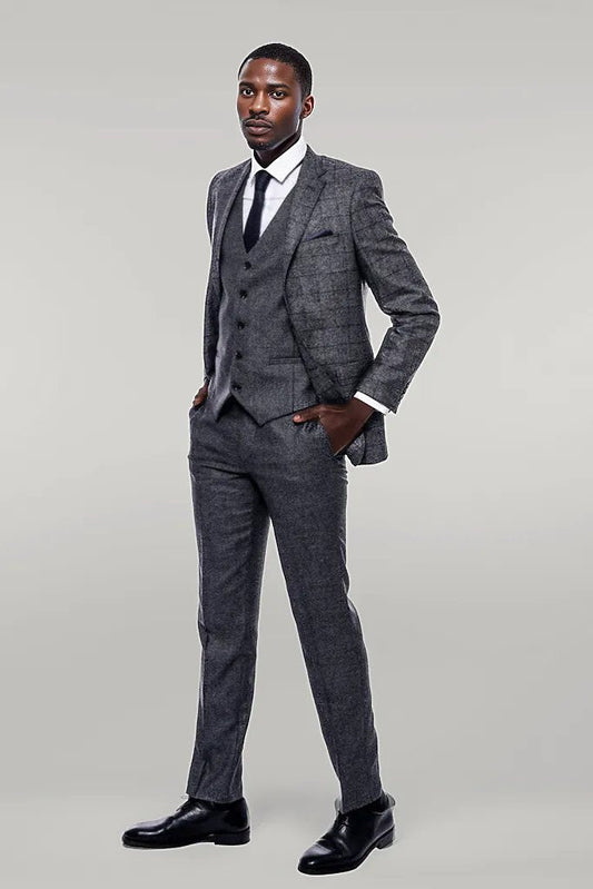 Cream Plaid Peak Lapel 3 Piece Suit -