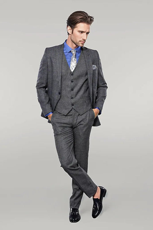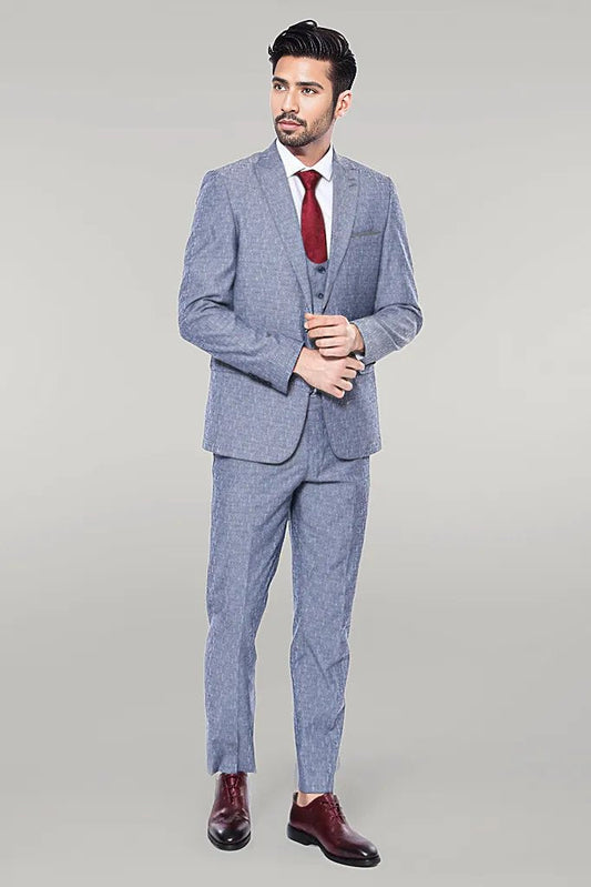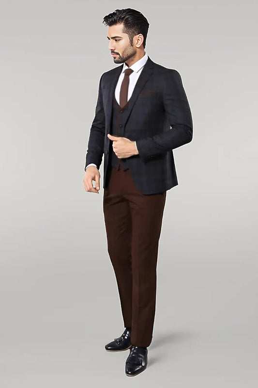 Men's British Korean Slim Fit Dark Blue Casual 3 Piece Suits