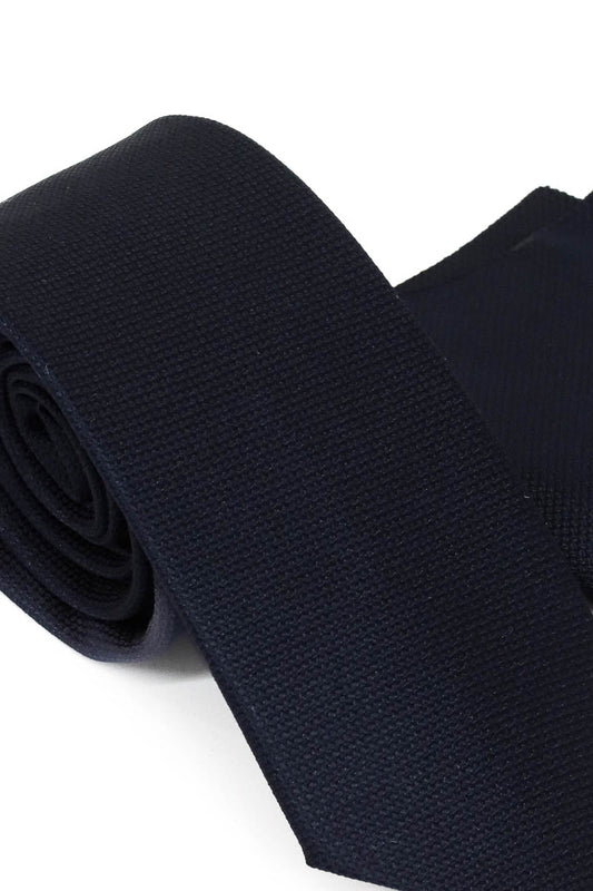 Navy Blue and Bronze Patterned Tie and Pocket Square Set