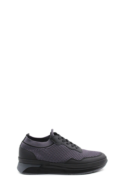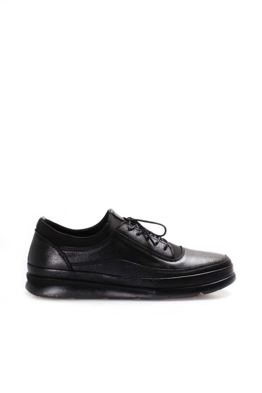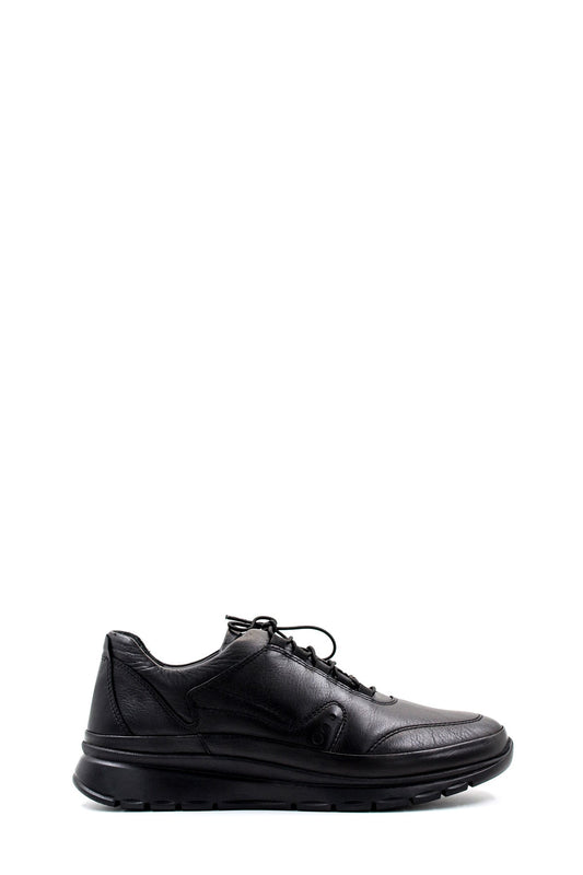 Men's Black Leather Comfort Sneakers with Cushioned Sole