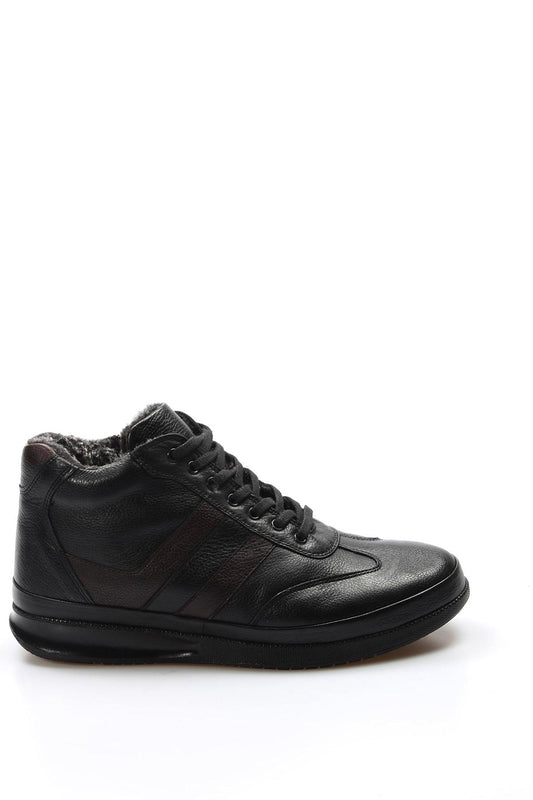 Men's Black Leather Sneakers with Fur Lining and Thick Sole