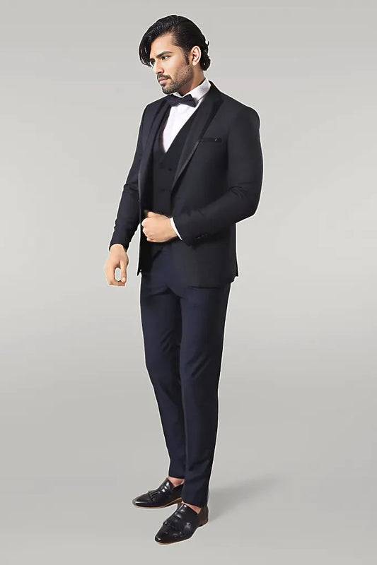 Shawl Lapel Patterned Black Men Wedding Suit |