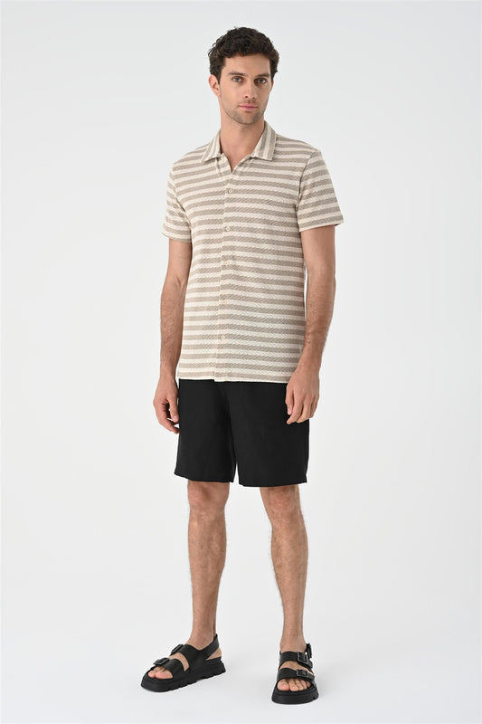 Men's Beige Short Sleeve Striped Knitwear Shirt