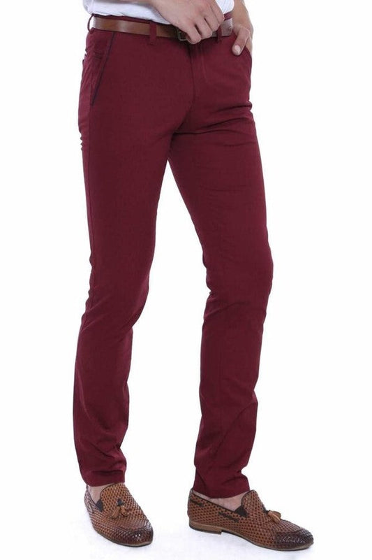 Cotton Slim Fit Washed Fabric Brown Men Pants