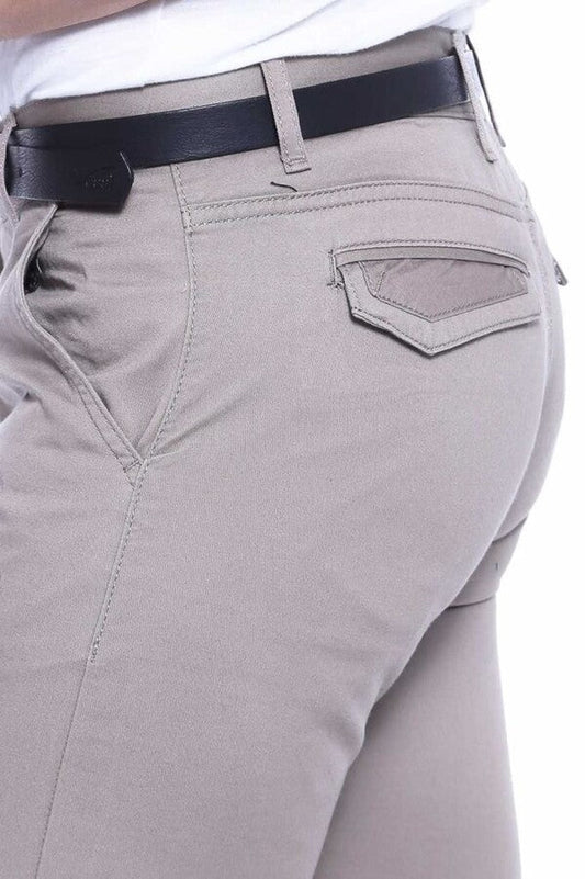 Suede Flap Pockets Plain Cotton Grey Men Pants