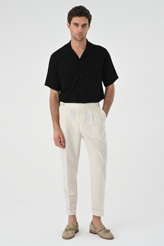 Men's Black Camp Collar Linen Blend Long-Sleeve Shirt