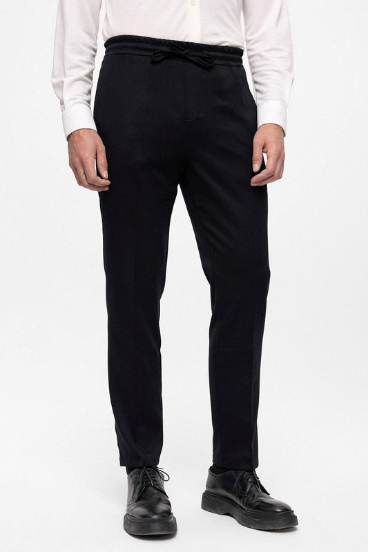 Men's Black Elastic Waist High Waist Pleated Trousers