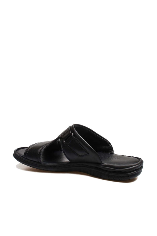 Men's Black Leather Slip-On Comfort Shoes-Wessi