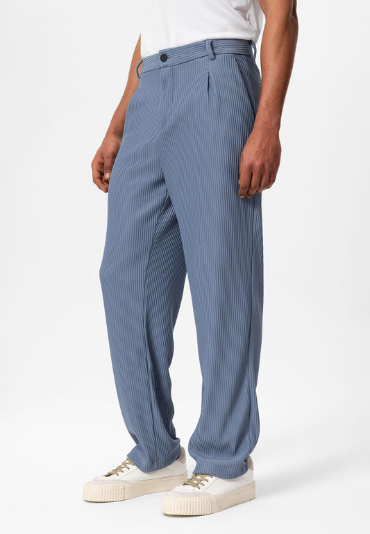 Men's Indigo Wool Look High Waist Pleated Trousers