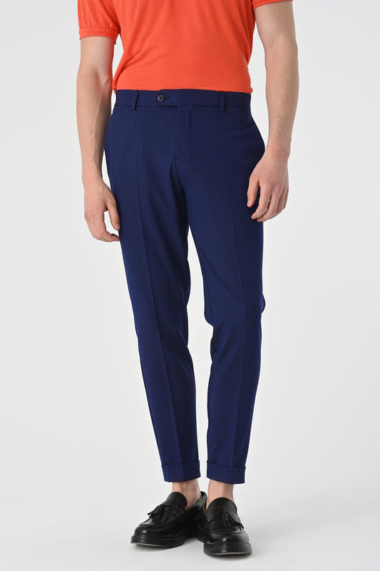 Men's Light Navy Blue Regular Fit Double Leg Trousers