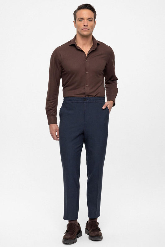 Men's Navy Blue Regular Fit Trousers with Elastic Waist