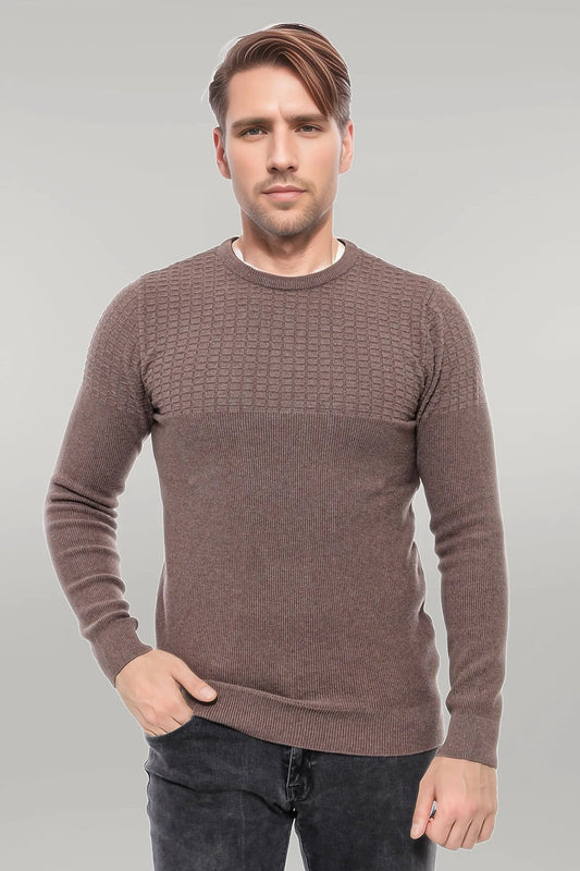 Men's Brown Crew Neck Slim Fit Knitwear Sweater