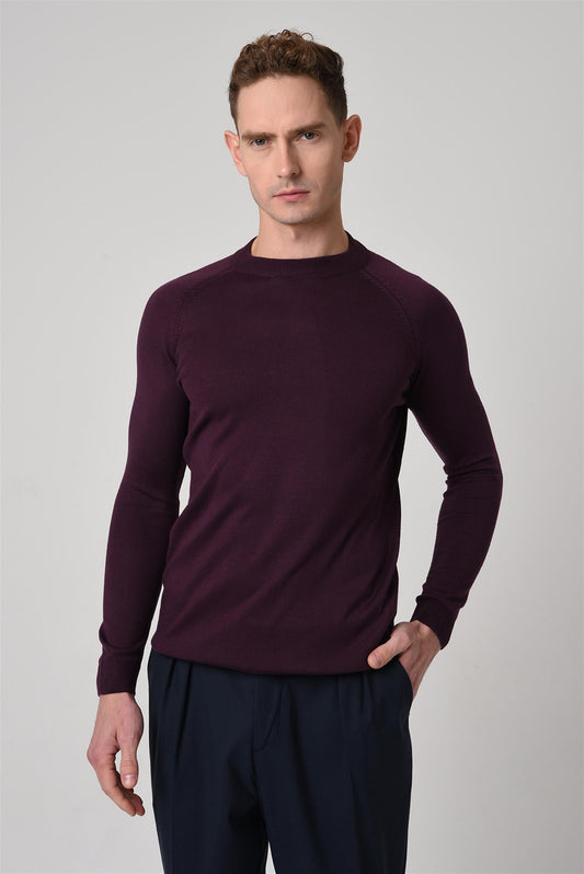 Men's Dark Damson Crew Neck Slim Fit Knitwear Sweater