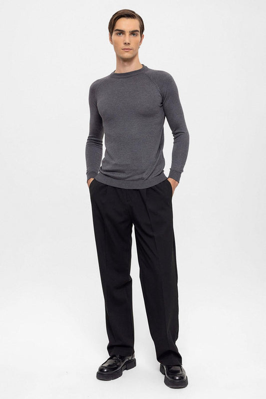 Men's Smoked Crew Neck Slim Fit Knitwear Sweater