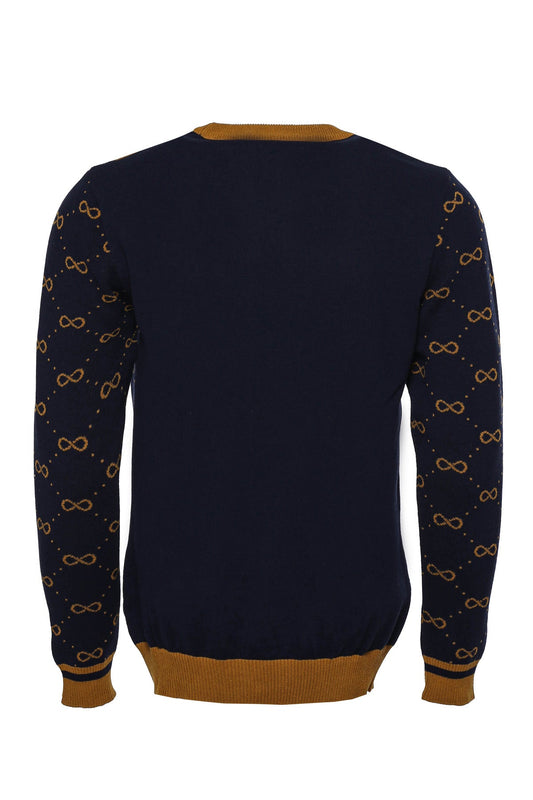 Chest Patterned Turtleneck Navy Blue Men Knitwear