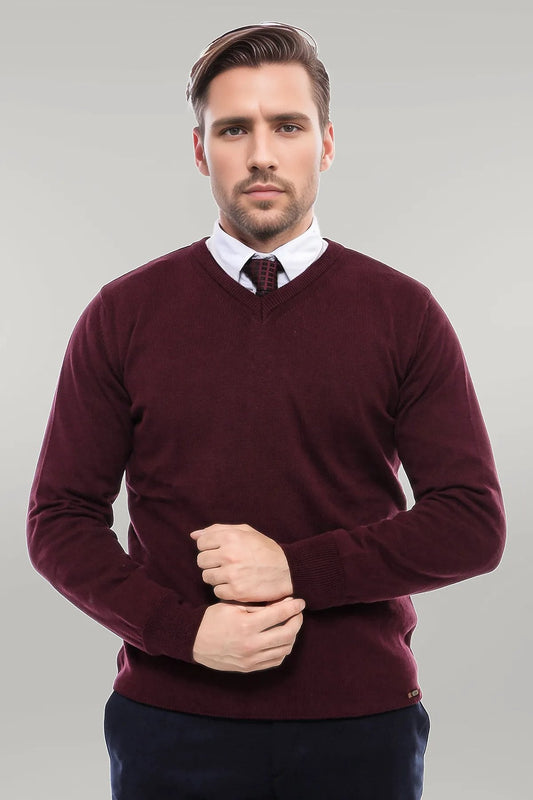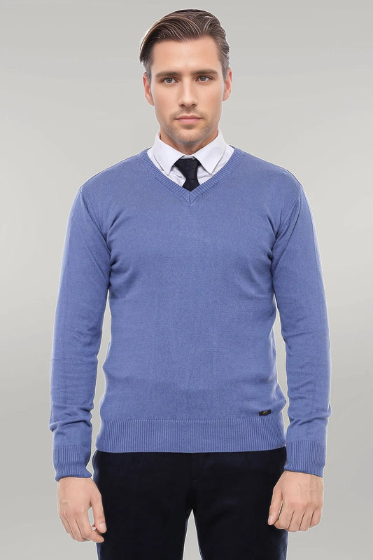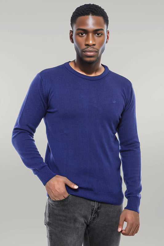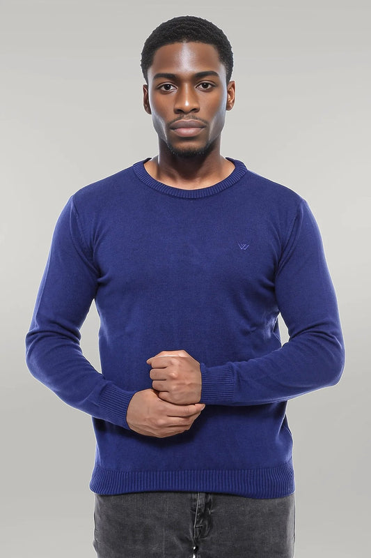 Navy Blue Crew Neck Embroidered Plain Knitwear