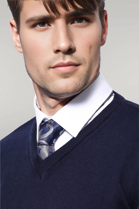 Half Turtleneck Knitwear Navy Blue Men Sweater