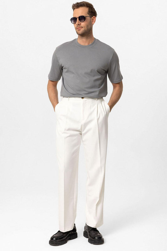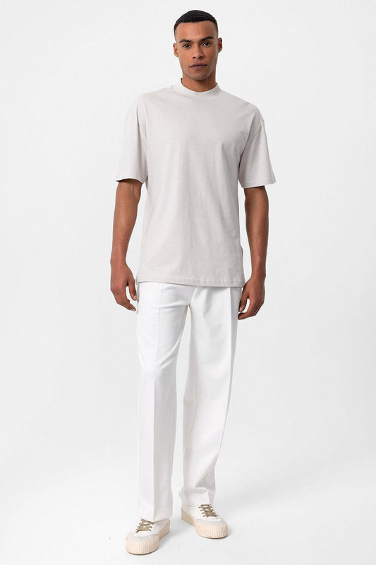 Men's Light Khaki Crew Neck Basic T-Shirt