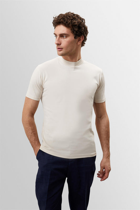 Men's Light Khaki Slim Fit Basic T-Shirt