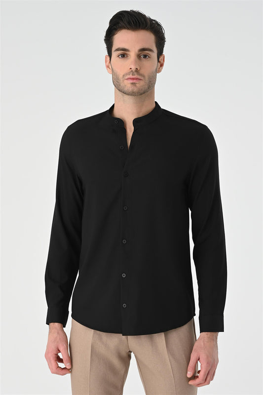 Men's Black Relax Fit Shawl Collar Short Sleeve Shirt