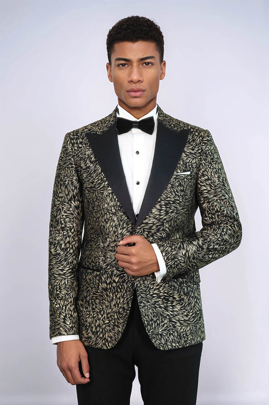 Feather Patterned Slim Fit Black Men Prom Blazer and Trousers Combination Suit