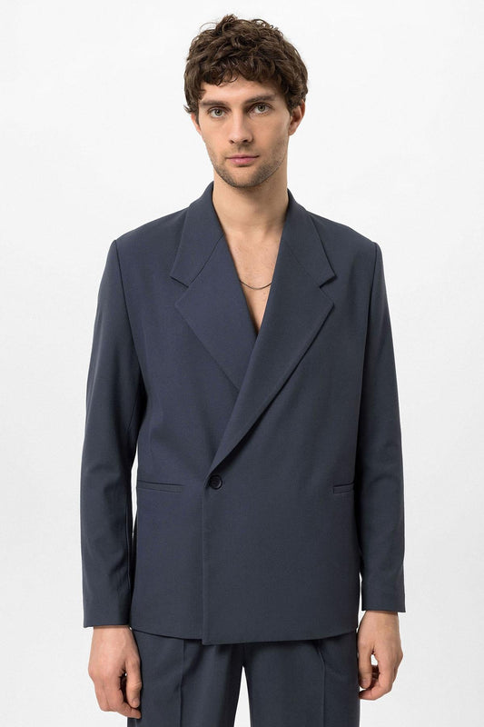 Men's Indigo Double-Breasted Knitwear Blazer Jacket
