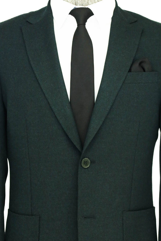 Textured Slim Fit Peak Lapel Green Men Blazer and Combination