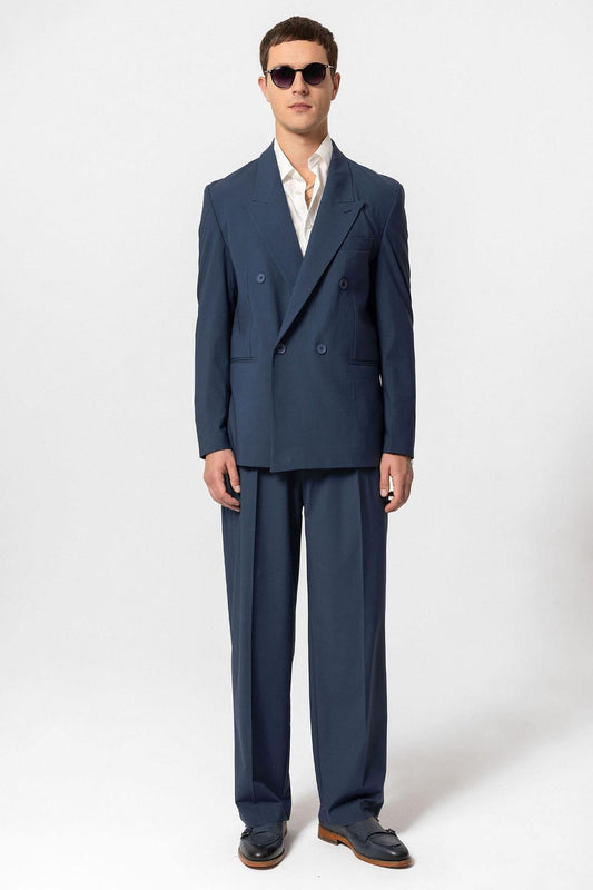 Mens Double Breasted Slim Fit Navy Blue Blazer