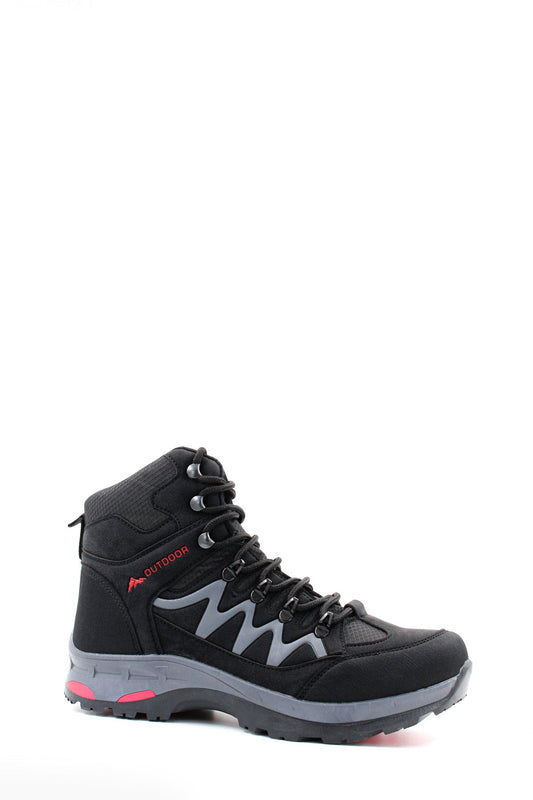 Men's Black Outdoor Boots with Fur Lining and Rugged Sole
