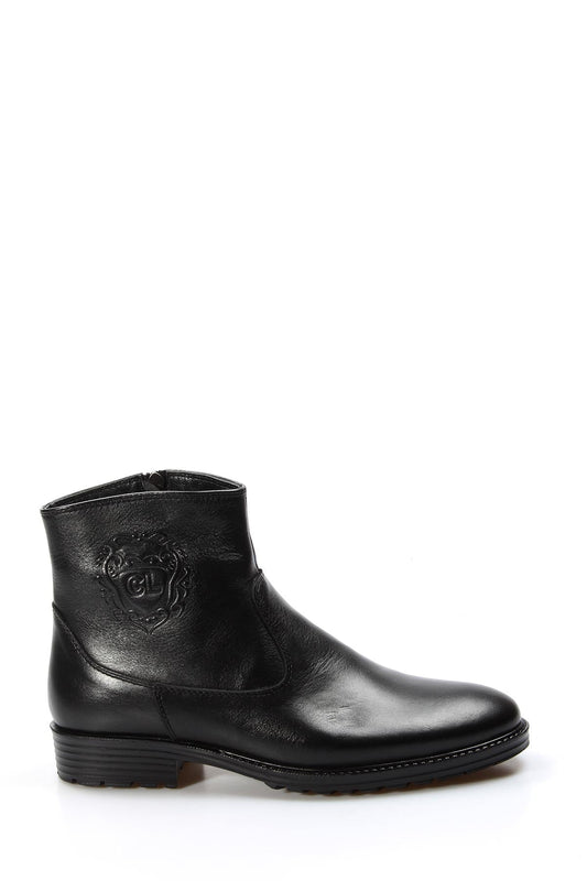 Men's Black Leather Ankle Boots with Embossed Crest Detail
