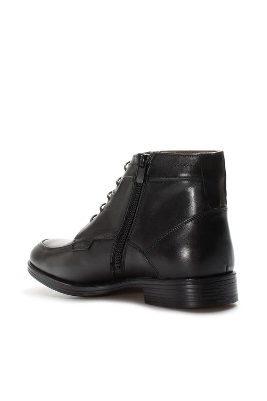 Men's Black Leather Ankle Boots with Side Zipper and Lace-Up Design