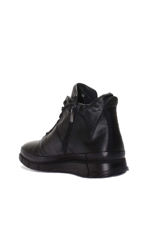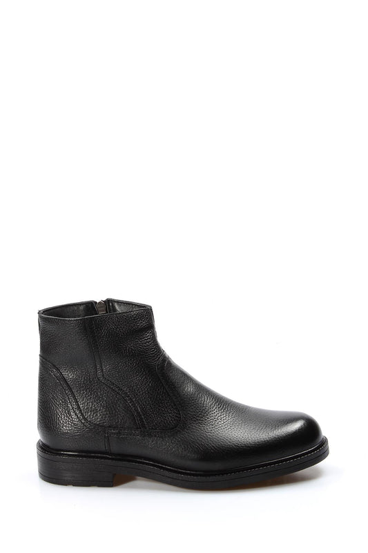 Men's Black Leather Boots with Fur Lining Lace-Up Durable Sole Wessi