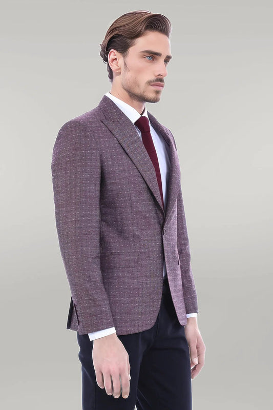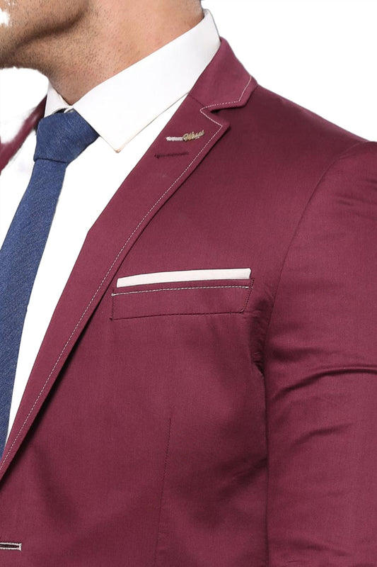 Textured Slim Fit Peak Lapel Burgundy Men Blazer