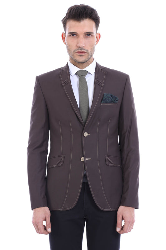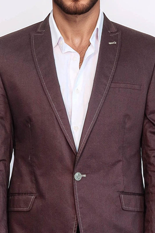 2 Button Mono Lapel Plain Cotton Brown Jacket-Wessi