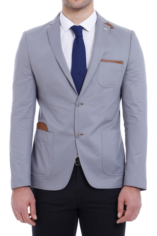 Slim Fit Plain Wide Lapel Grey Men Wool Blazer