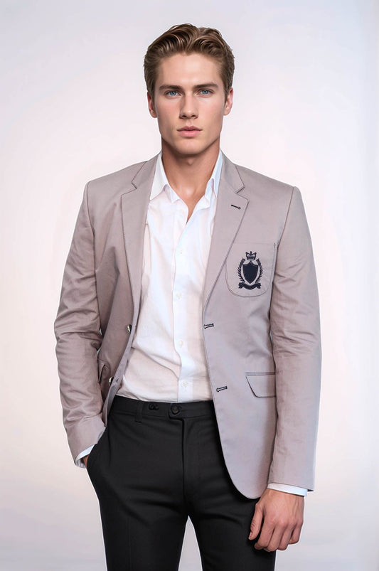 Light Grey Herringbone Pattern Gold Metal Button Slim Fit Men's Blazer Jacket