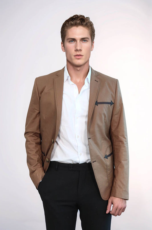 2 Button Shoulder Split Cotton Brown Jacket-Wessi