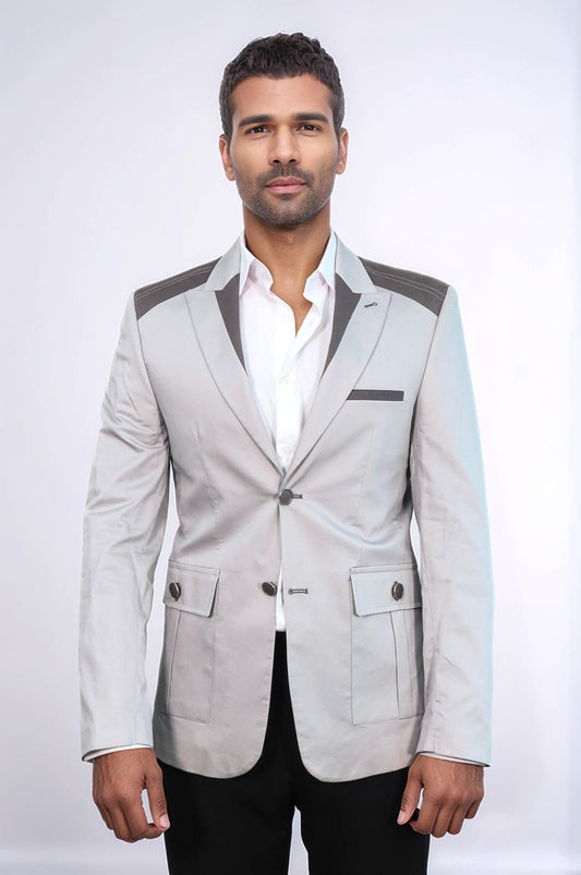 2 Button Bag Pocket Velvet Grey Jacket-Wessi