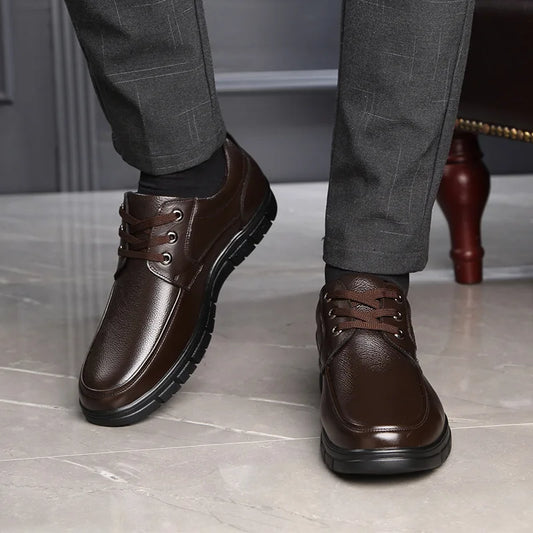 Men's Brown Leather Fleece-Lined Casual Shoes