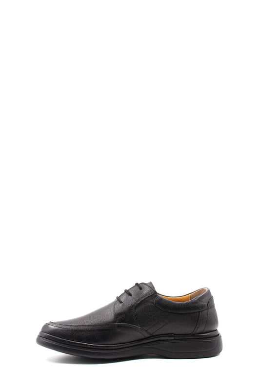 Men's Black Textured Leather Lace-Up Derby Shoes with Cushioned Sole