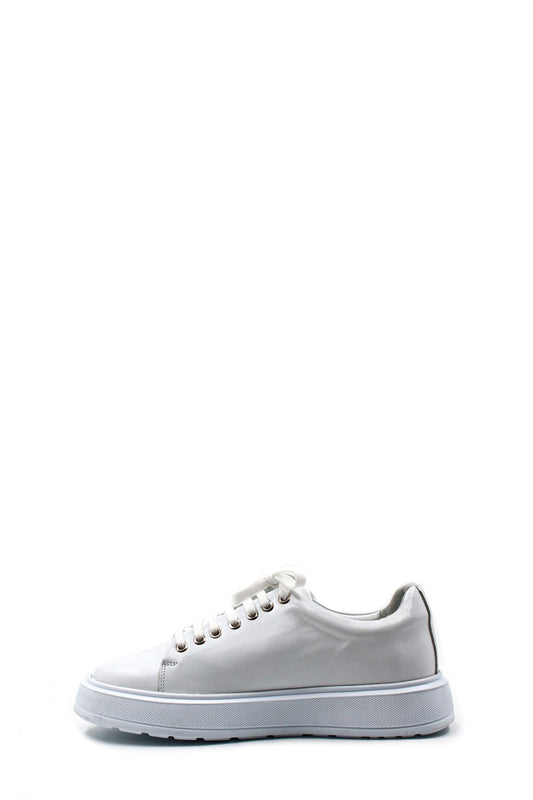 Men's White Leather Sneakers with Thick Sole and Metal Eyelets