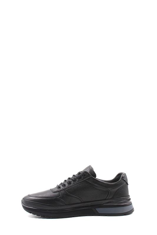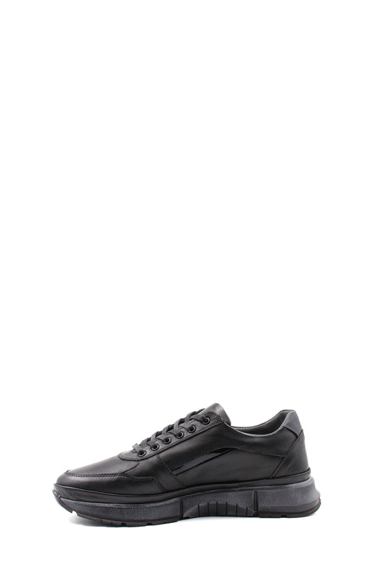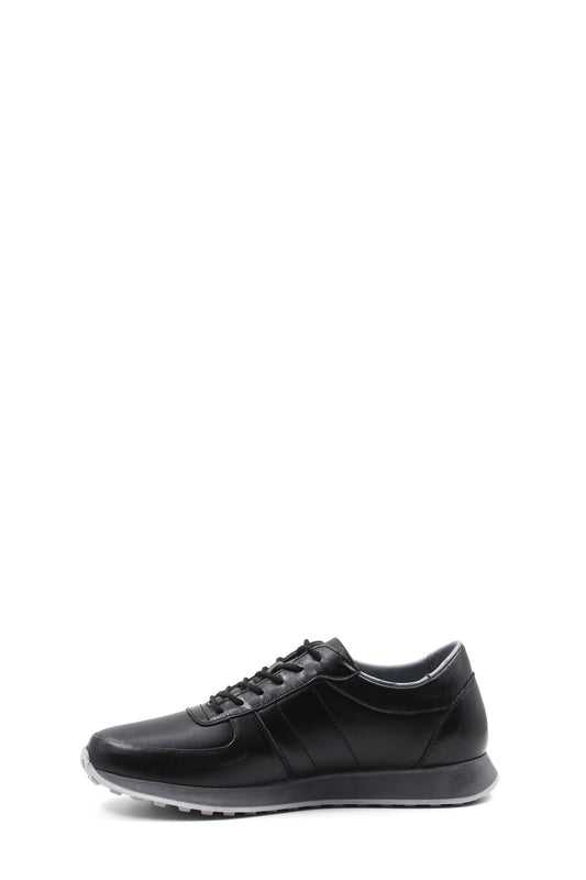 Men's Black Leather Lace-Up Sneakers with Elevated Sole