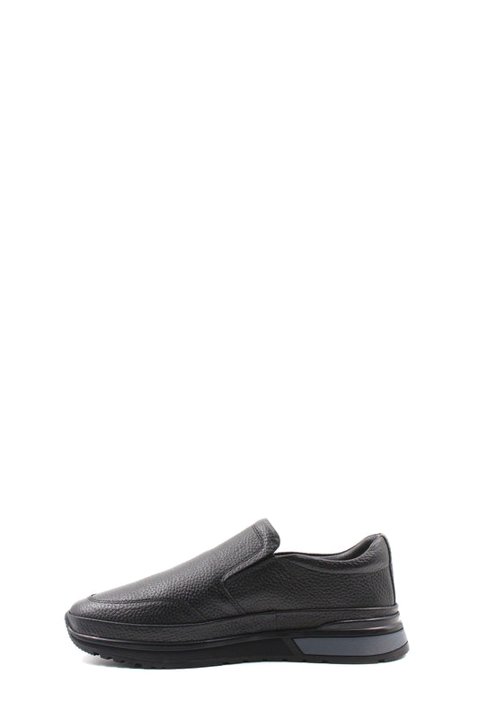 Men's Black Textured Leather Slip-On Loafers with Cushioned Sole