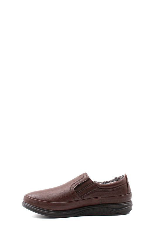 Men's Brown Fur-Lined Slip-On Shoes-Wessi