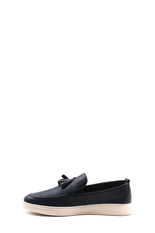 Men's Navy Blue Leather Tassel Loafers-Wessi