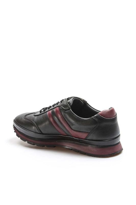 Men's Black and Burgundy Leather Sneakers