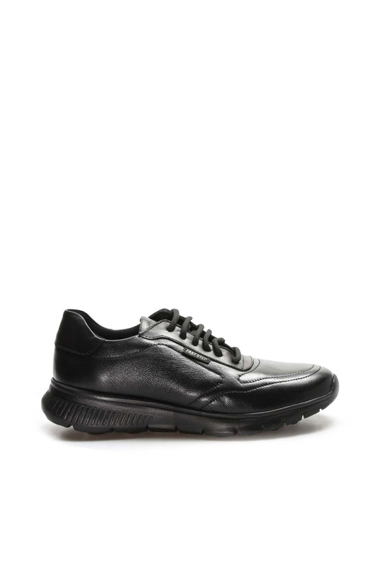 Men's Black Leather Lace-Up Sneakers with Textured Sole