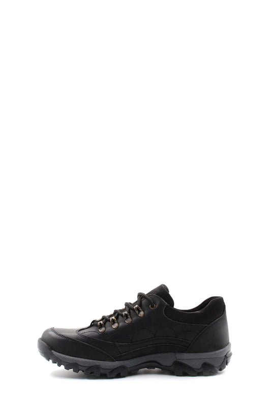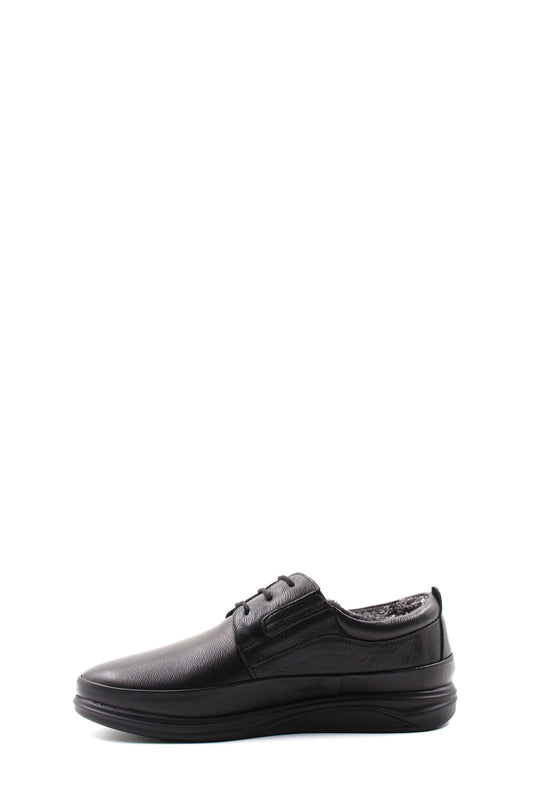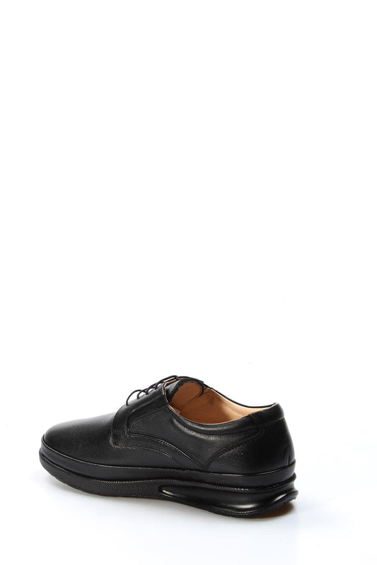 Men's Black Orthopedic Lace-Up Leather Sneakers with Cushioned Sole