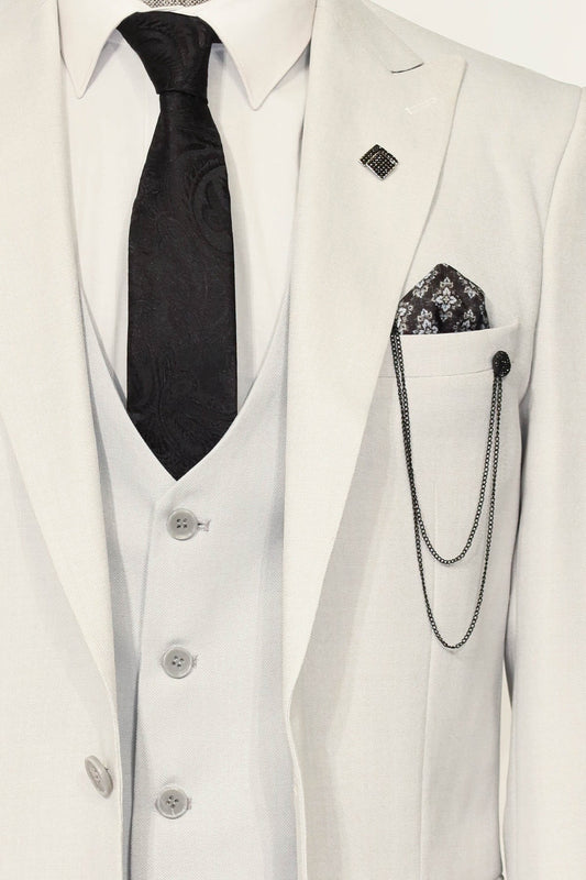 3 -Piece Single Button Peak Lapel Grey Men Suit -