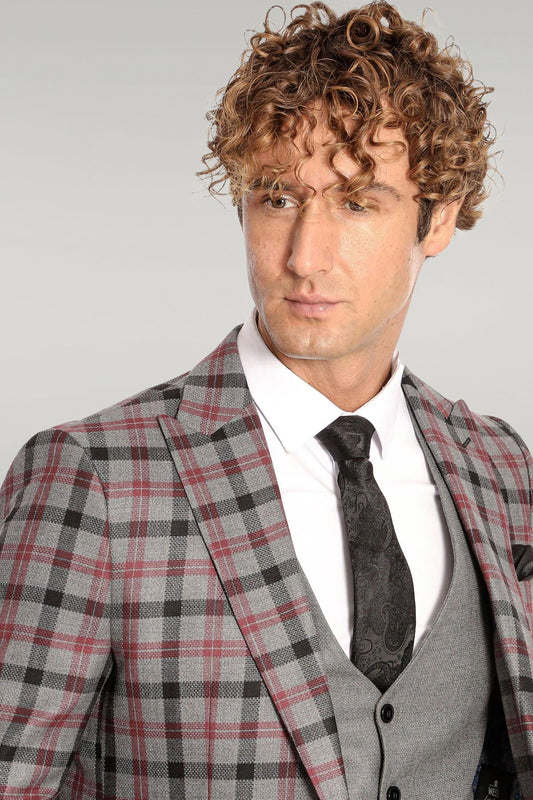 Checked Slim Fit Grey Men Suit